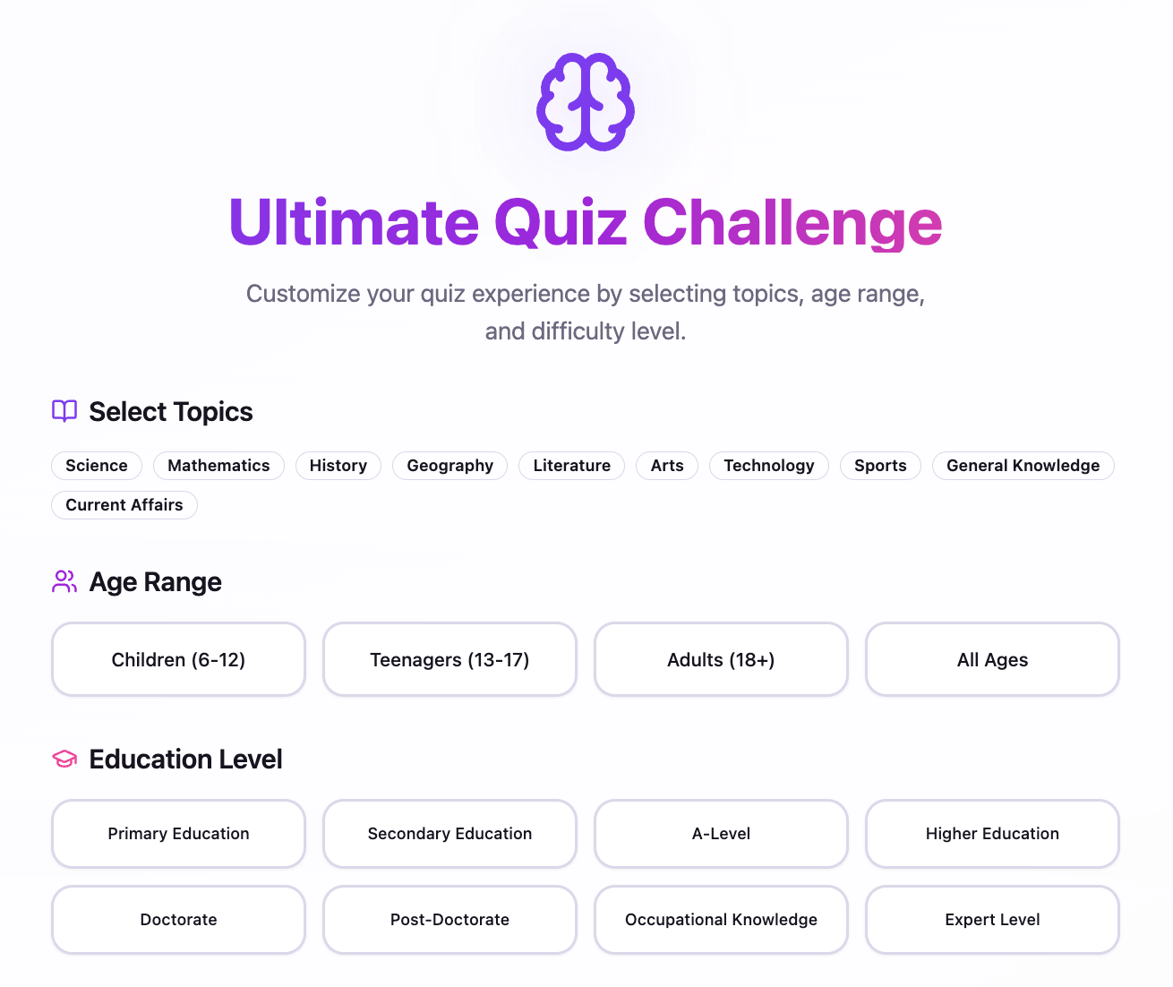 Quizzes on Everything: Explore a vast universe of quizzes covering every subject, from pop culture and history to science and general knowledge.