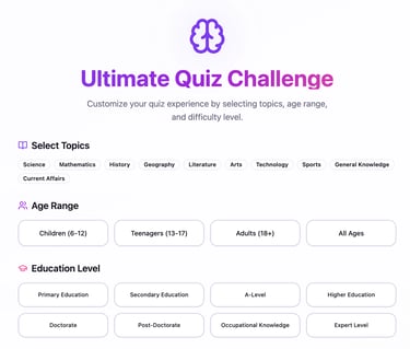 Dive into Quizzzies, the engaging quiz platform built to challenge your knowledge on any topic imaginable! Whether you're a trivia master or just looking to learn something new, Quizzzies offers an interactive and fun way to expand your mind.